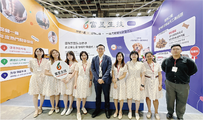 富昱今年以「人用保健 x 寵物營養」雙主題參展,由保健一廠與寵物二廠共同呈現最新研發成果:
